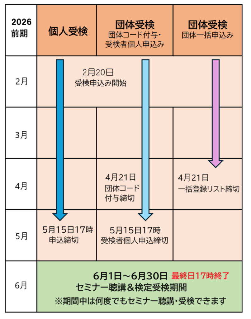 2026年前期受講・受検は6月全日(6月1日~30日)実施